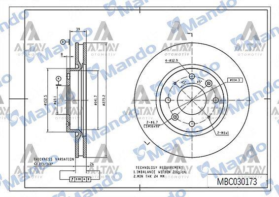 FREN DISKI CERATO 04-08 / ÖN HAVALI 275-4 (ADET) (MND-MBC030173)