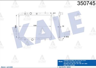 RADYATÖR SU C-ELYSEE 12= / 301 12= / C2 03-09 / C3 II 09-16 / 207 06-12 / 208 12= / 2008 13= / C3 PICASSO 09= / DS3 09-13 1.6 HDI (MT) 3 AYAK BRAZING (KLE-350745)