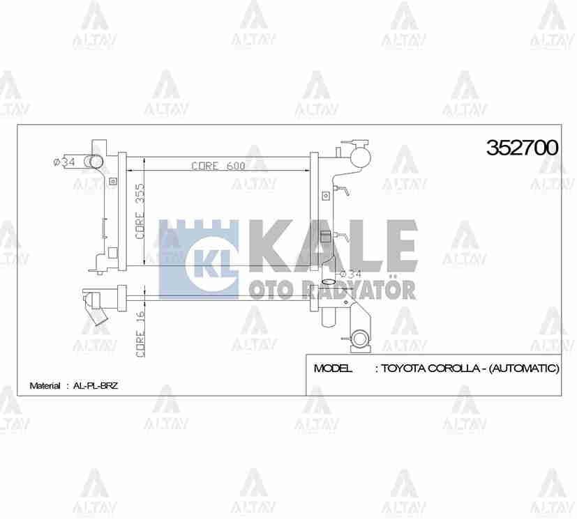 RADYATÖR SU COROLLA 02-07 / AVENSIS 03-08 3ZZ A-T BRAZING (KLE-352700)
