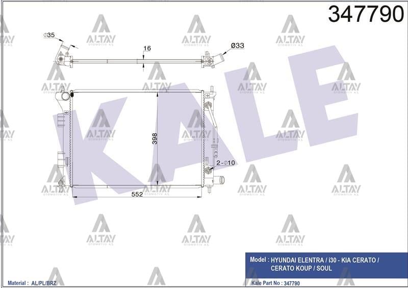 RADYATÖR SU ELANTRA 11-13 / I-30 12-16 / CERATO / SOUL 16mm A-T BRAZING (KLE-347790)