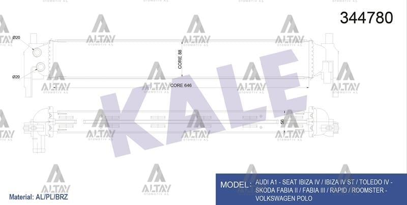 TURBO RADYATÖRÜ (INTERCOOLER) POLO / FABIA / IBIZA 10= CBZC-CJZC-CBZB-CUSA-CYZB-CUSB-CUTA 1.2 TSI-1.4 TDI BRAZING (KLE-344780)